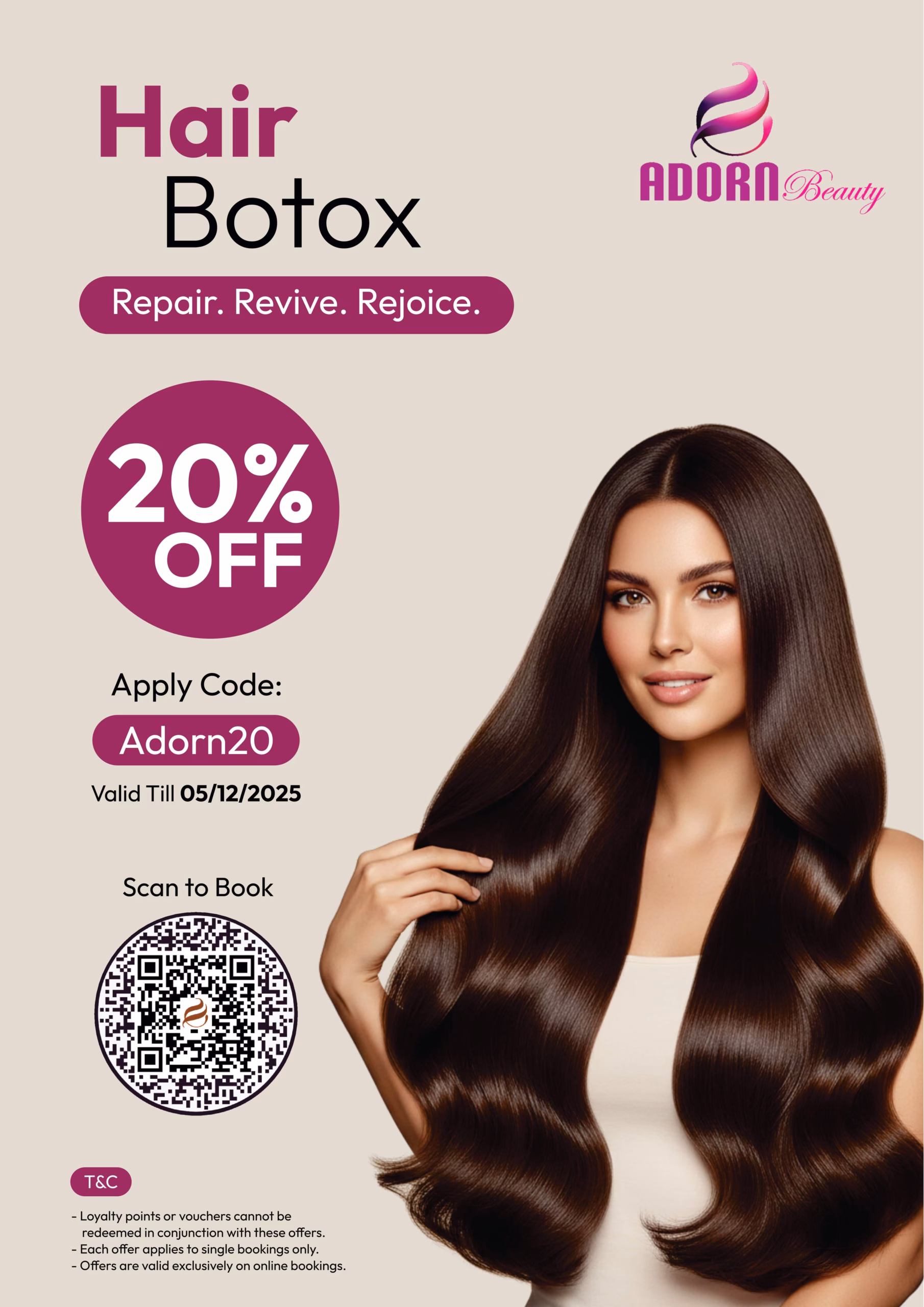 Use code Adorn20 to get extra 20% off on Hair Botox Treatment.
